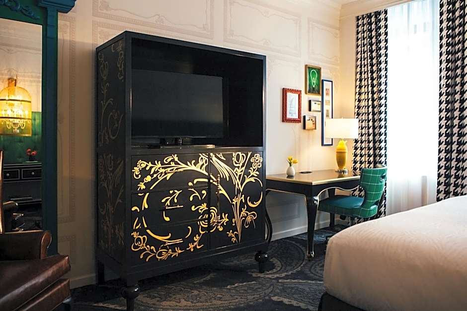 This suite with a king bed offers a 55" flat-screen TV, a spa bath and seating area with sofa bed.